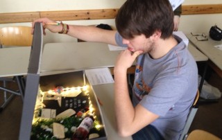 Auch in einem Englisch Grundkurs sind tolle Kisten entstanden bei dem Projekt „Book in a Box“ und die gegenseitige Begutachtung fand sehr interessiert und konzentriert statt. Die gelesenen Bücher werden nunmehr mit Hilfe der „Bücherkisten“ vorgestellt und auch hier ist die Spannung groß und Einfallsreichtum gefragt.